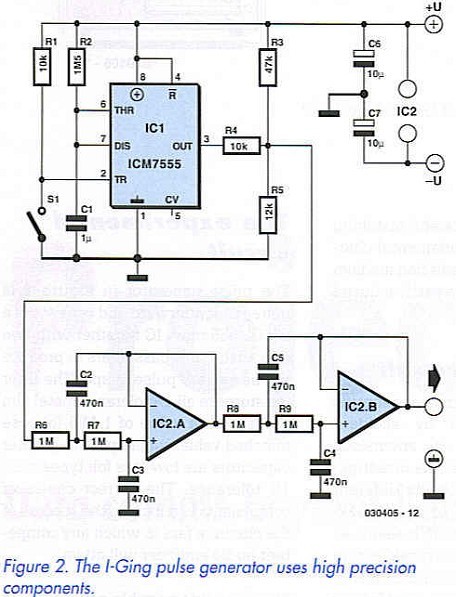 The pulse generator in Figure 2 is quite straightforward and consists of a CMOS 555 timer IC together with two cascaded band-pass filters to produce the necessary pulse shape. The filter resistors are all 1% tolerance metal film types with a value of 1 Mfi (choose matched values where possible). Filter capacitors are low-loss foil types with 1% tolerance. The correct choice of components is critical to the success of the circuit, a fact to which any competent audio engineer will attest.