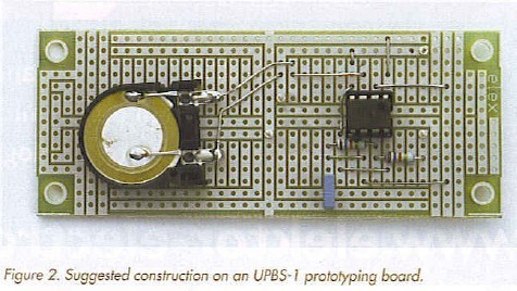 For this project too, we have designed a printed circuit board. However, this time not quite as you have come to expect from us. Figure 2 shows a PCB layout for our Universal Prototyping Board size-1 (UPBS-1) which can be purchased ready-made through the Elektor Electronics Readers Services. A normal piece of prototyping board, stripboard or Veroboard can be used as well, of course.