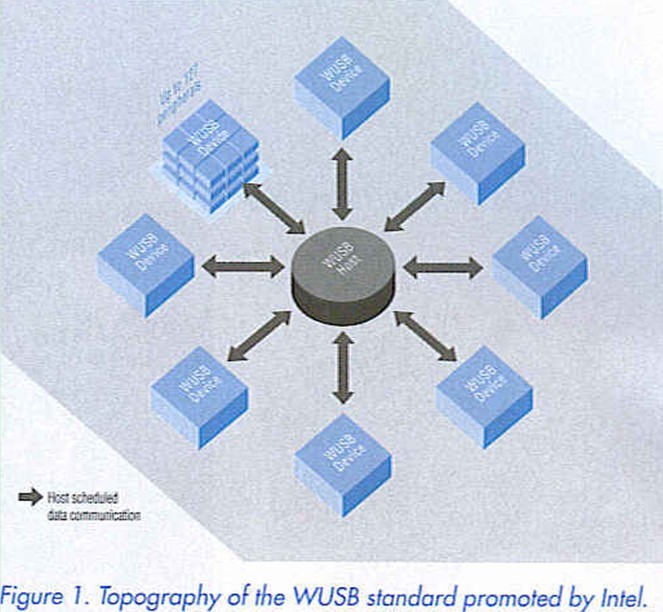 This could all be remedied by a new standard for wireless USB devices. In the same way that wireless LAN replaces LAN cables, wireless USB is intended to replace USB cable connections in the future (see Figure 1). Under the leadership of Intel, interested manufacturers have formed the Wireless USB Promoter Group to develop a common standard for wireless USB devices. This involves developing a radio technology that provides reliable data transmission at high data rates over short distances among devices such as home entertainment equipment, PC peripherals and mobile devices. For example, it could be used to transfer multimedia content without any cables or stream high-resolution video data from a digital video recorder to a television set in the living room.