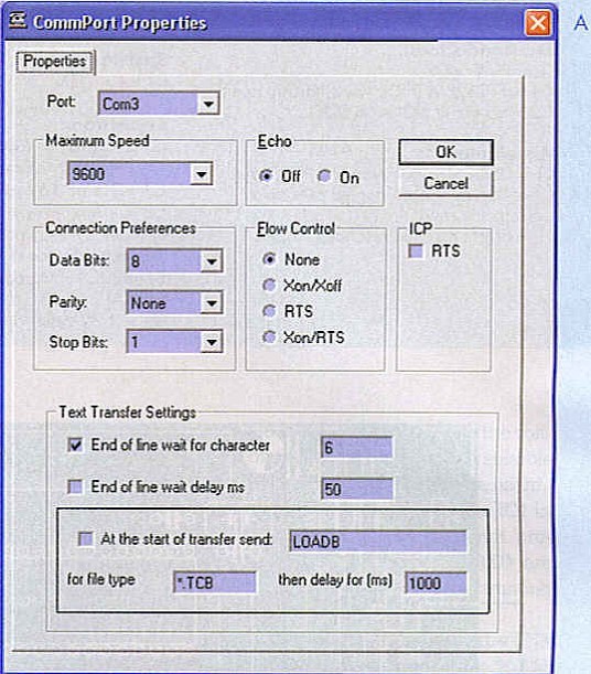 As indicated TCB has a very simple but effective file transfer protocol that the ByVac-Terminal takes advantage of. Start the terminal and use the initial settings as shown in Figure A. Note that the "End of line wait for character" is checked. At the terminal type LOADB as Figure B.