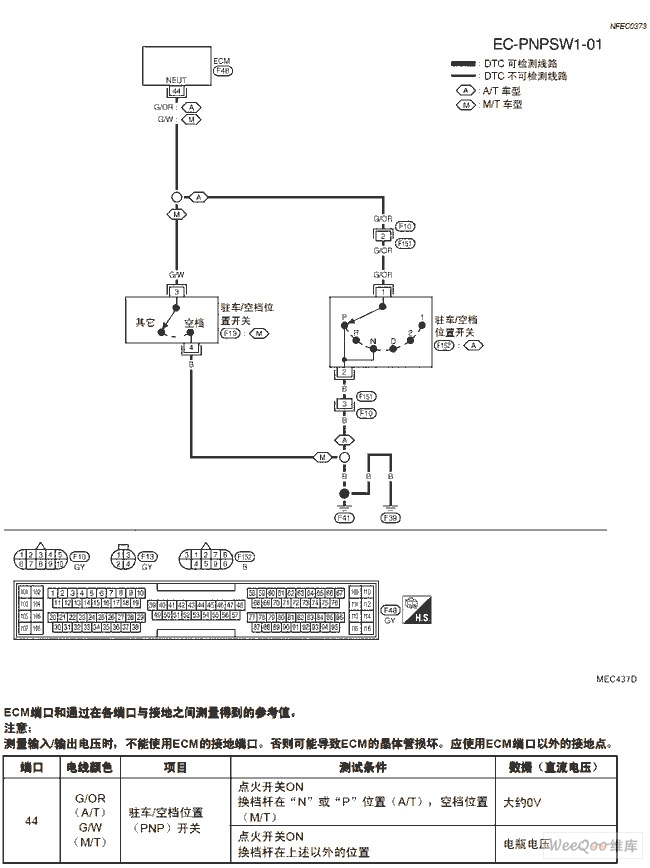 ECM port and the measured reference value between every port and the ground Attention:when the circuit measures the input / output voltages,it can’t use the ECM ground port.It could lead to the damage of ECM transistor.It should use ECM port outside of the ground point