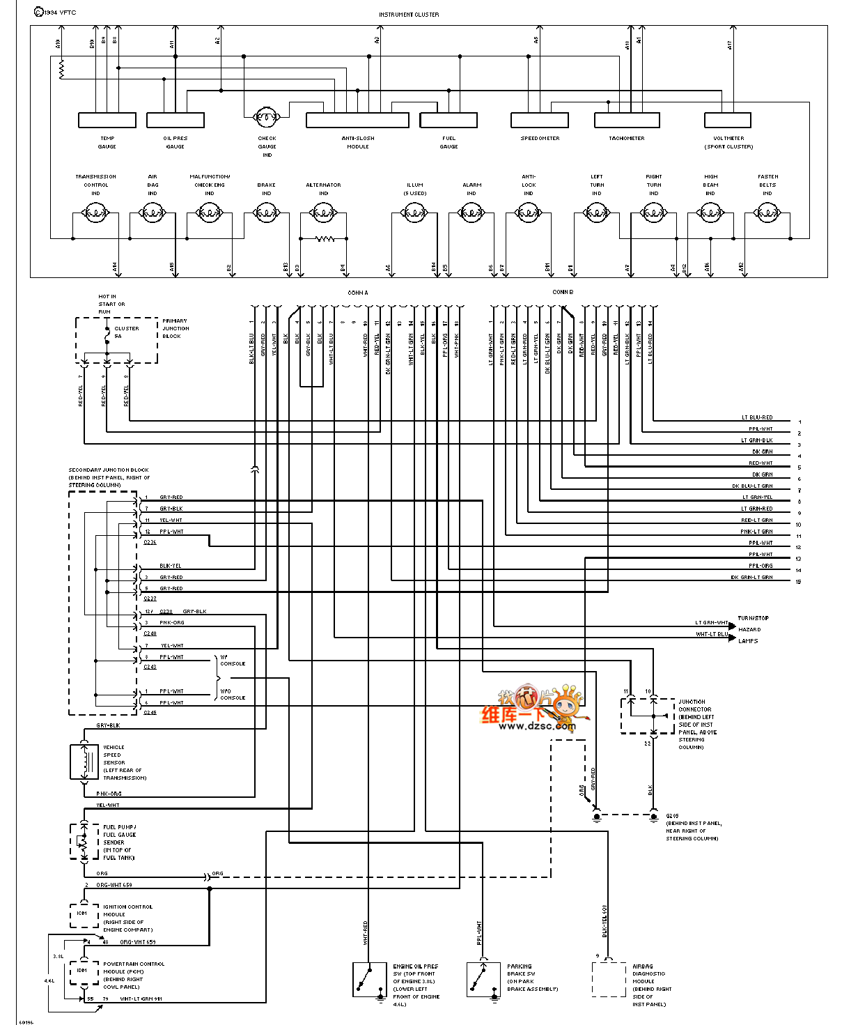 Mazda 94THUNDERBIRD dashboard circuit is shown.