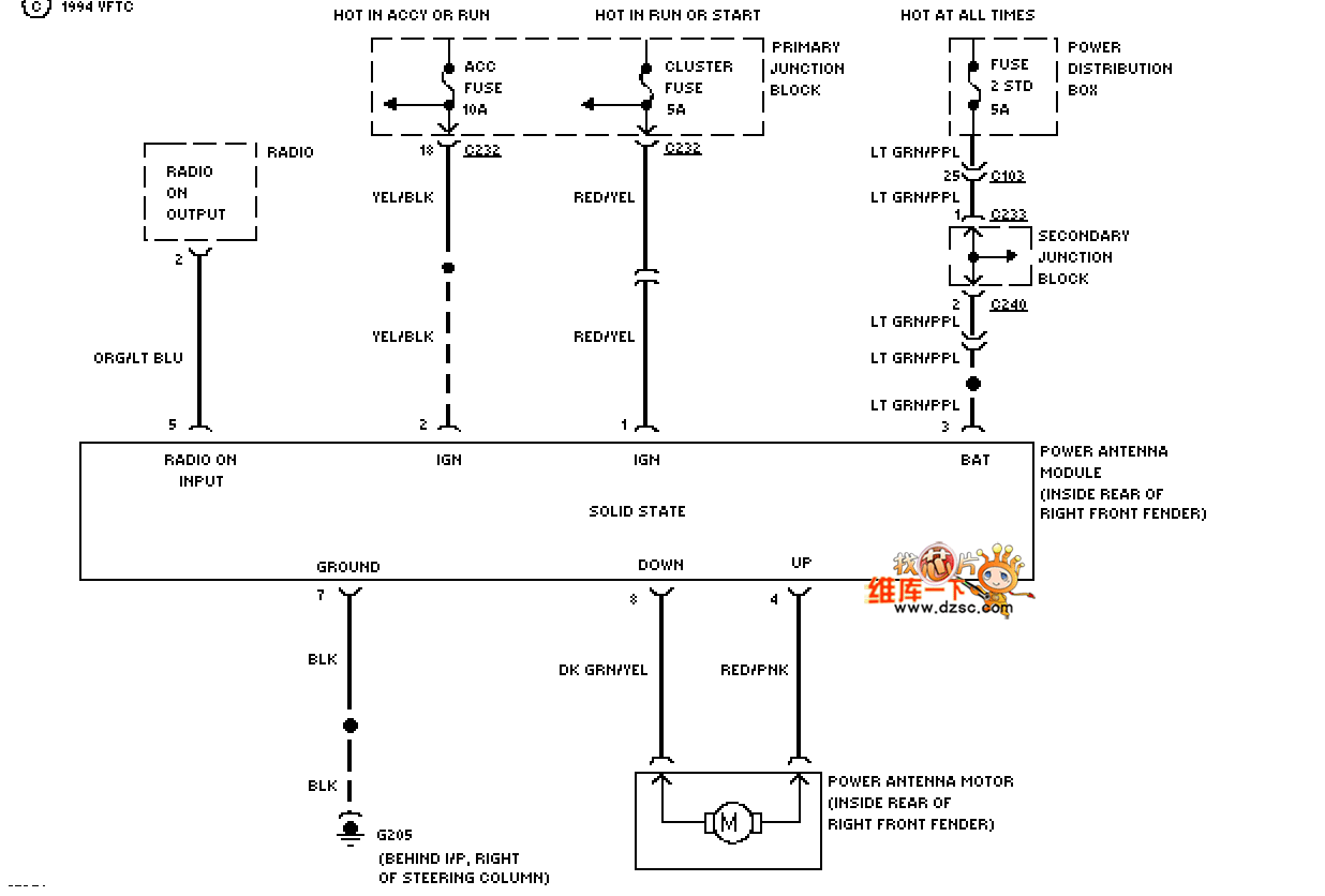 Mazda 94THUNDERBIRD electric antenna circuit is shown.