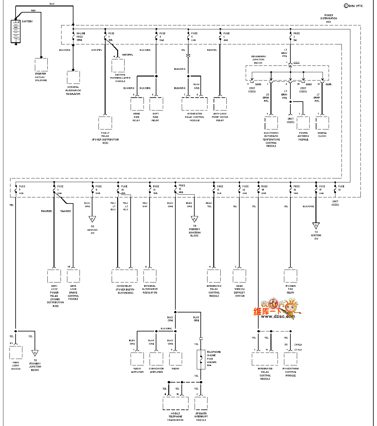 Mazda 94THUNDERBIRD power supply circuit is shown.