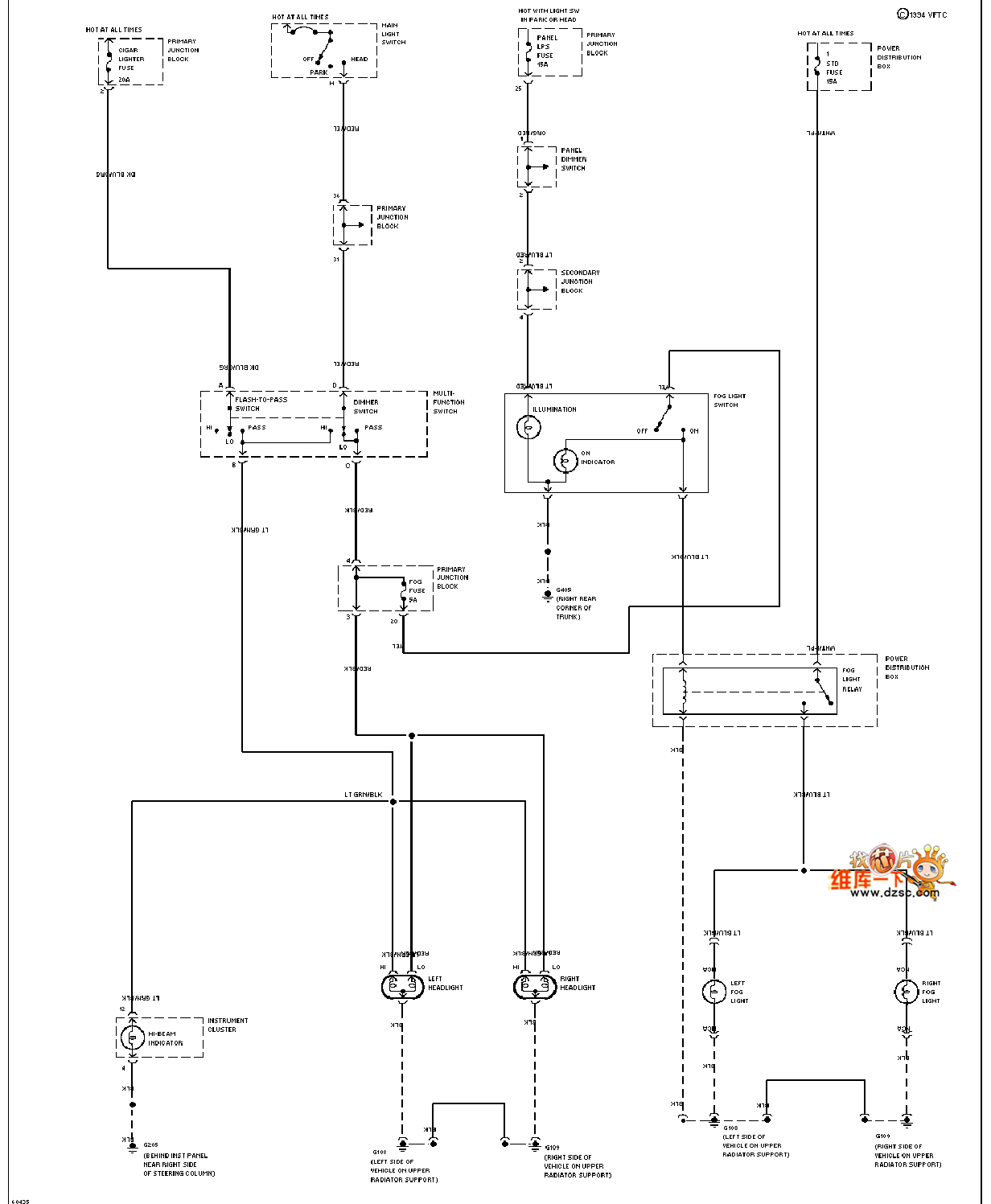 Mazda 94THUNDERB (without DRL) headlamps and fog lamps circuit is shown.