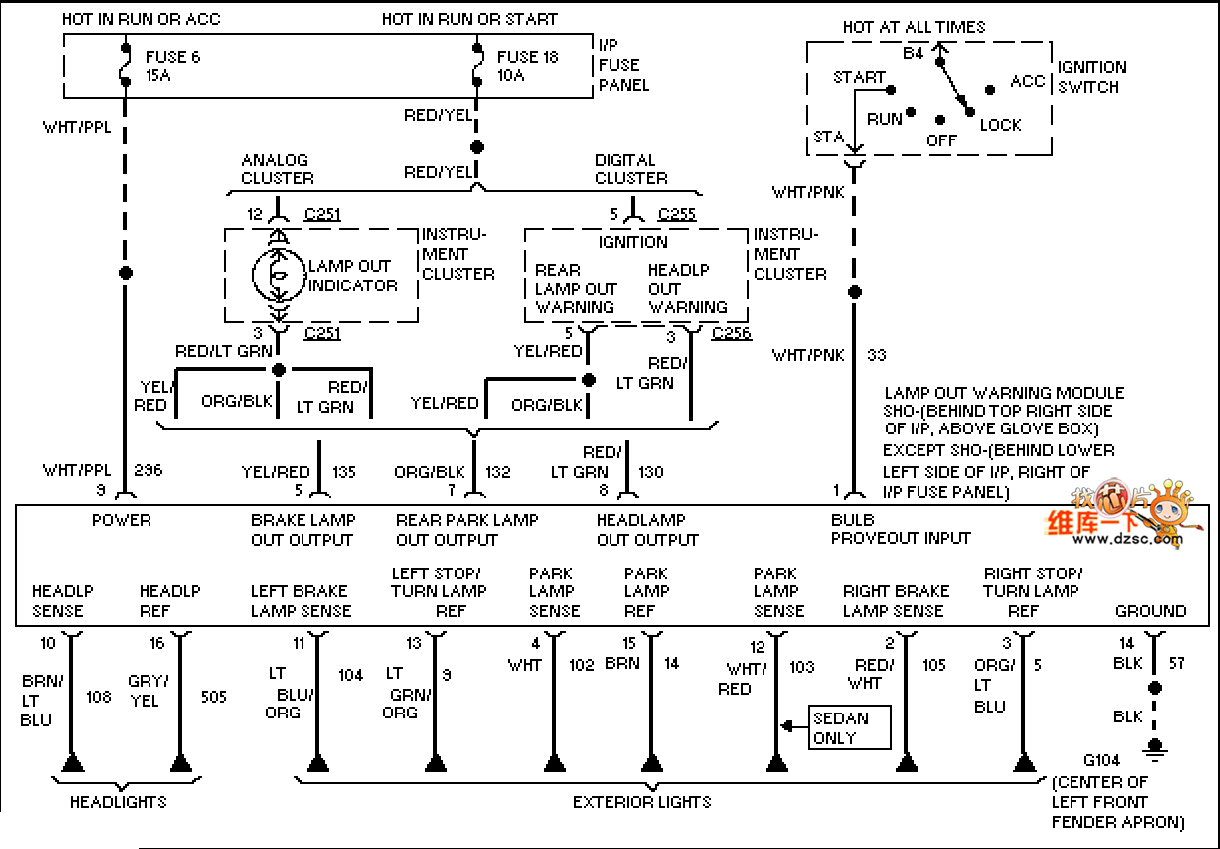 Mazda 95TAURUS (3.0L, SHO) lamp monitor circuit is shown.