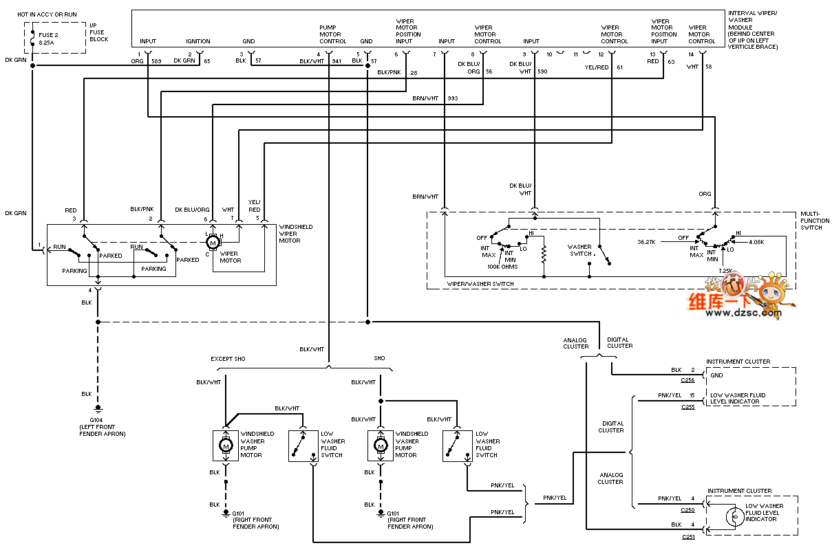 Mazda 95TAURUS front wiper washer circuit is just as shown.