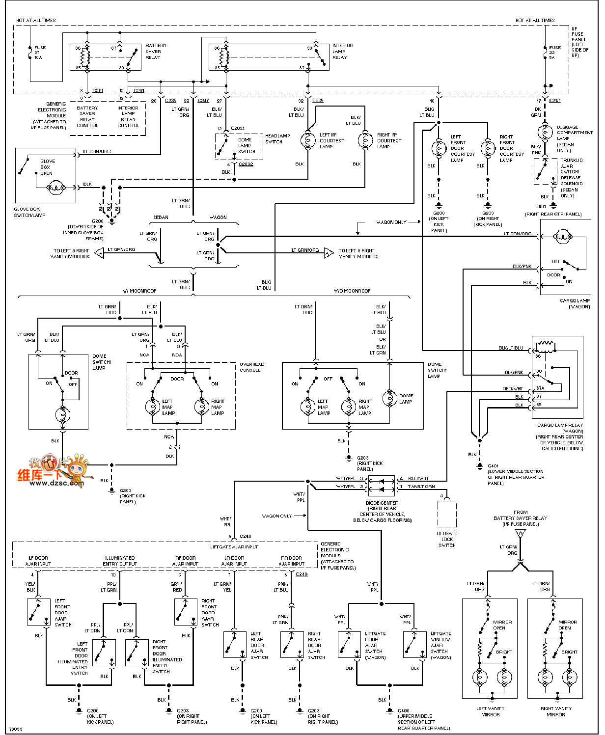 Mazda 96TAURUS gate controlling light circuit is shown.
