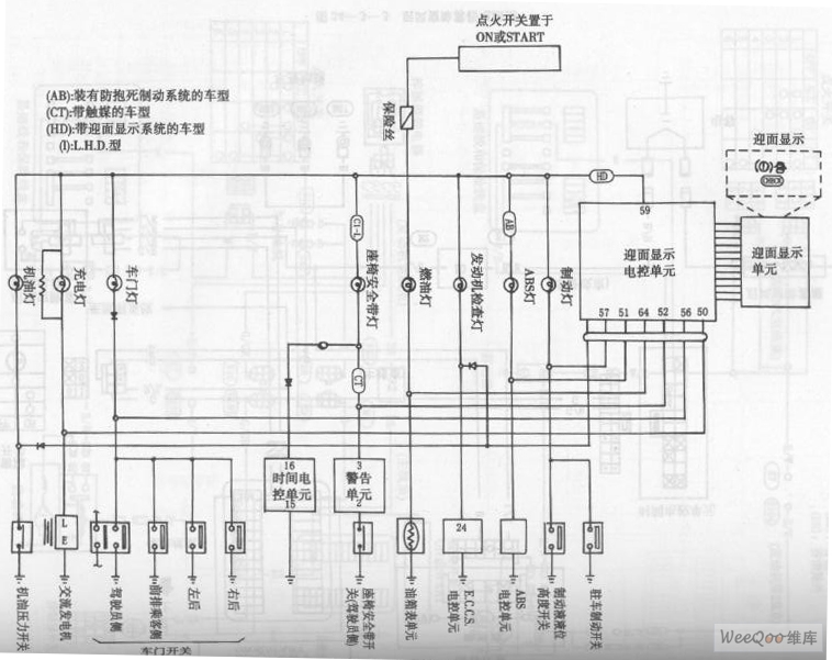 (AB):the model withAnti-lock Brake Systems (CT): the model with catalysts (HD):the model with head-on display system (I): the L.H.D type