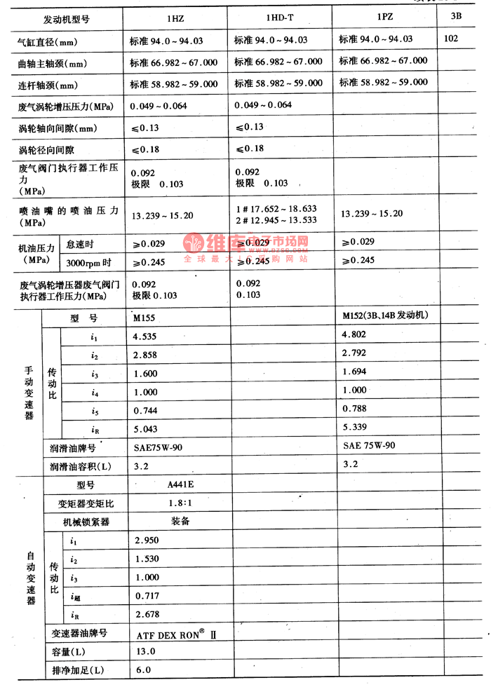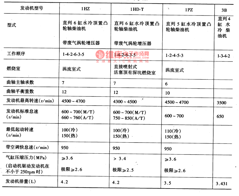 The medium-sized bus of Coster (or Cruise) produced by Toyota takes a large share of Chinese market, of which the ones imported in 80s are gasoline cars, such as RB10, RB11 and BB1O; and the ones imported in 90s are almost diesel cars, such as PZJ(HZJ)70/73/75,HDJ80, HZB30 and HDB30. (1) the main parameters of the engineThe Coster are installed with the 1PZ 5-cylinder diesel engine or 1HZ and 1HD-T 6-cylinder engine, the main parameters are shown in figure 1.