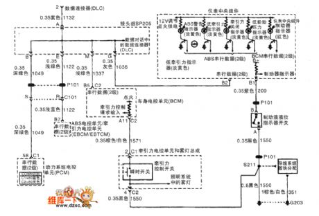 Figure 1. The ABS USB data, SP205, PCM, BCM, grouped instrument and ABS /traction control unit circuit of Buick-MPV (GL8)