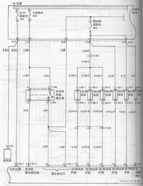 Figure 1. The 2.0L(L34) engine, input/output and car speed sensor circuit of Shanghai GM Buick-Regal