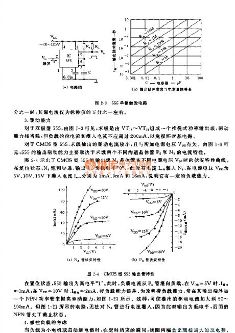 Basic relationshipbetween monostable model timingand timing network RaC has been shown in picture 2-3.As RaC’s time constant has various mixes, and operation of the circuit is relevant to property of load, trigger level and voltage controlled. Following factors should be taken into consideration to guarantee normal operation of the monostable circuit.