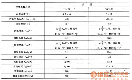 For correctly using the 555 time-base circuit, we should know about its main parameters. The TTL type and CMOS type 555 time-base circuits have difference in their features and parameters. So this table listed their main parameters separately to be used for reference. For dual time-base circuit, the parameters are all the same with the single time-base circuit's except for the its doubling quiescent current. So it can be used by taking the single time-base circuit's main parameters as the reference.