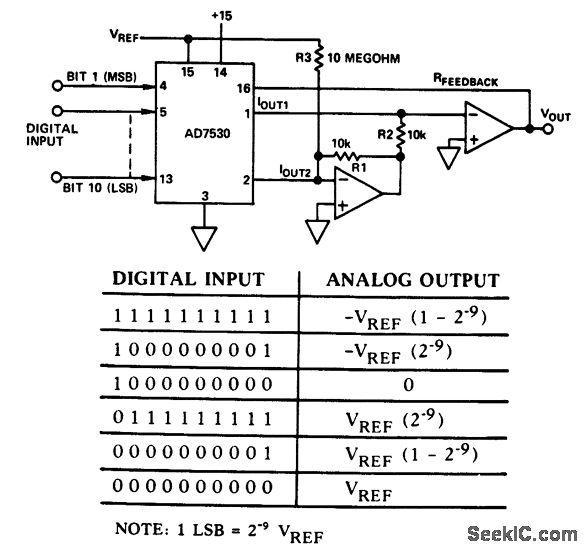 http://www.seekic.com/circuit_diagram/A-D_D-A_Converter_Circuit/10_bit_D_A_converter_in_bipolar_operation.html