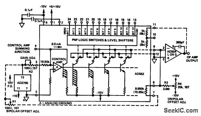 12-bit D/A converter with precision 10-volt reference (courtesy Analog Devices, Inc.).