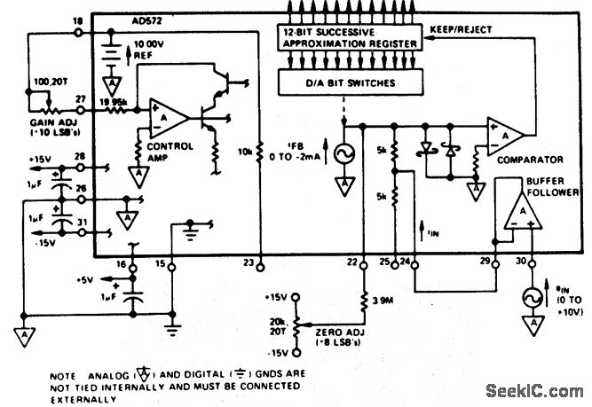 http://www.seekic.com/circuit_diagram/A-D_D-A_Converter_Circuit/12_bit_successive_approximation_A_D_converter_for_unipolar_0_to__10_volt_input_range_with_buffer_follower.html