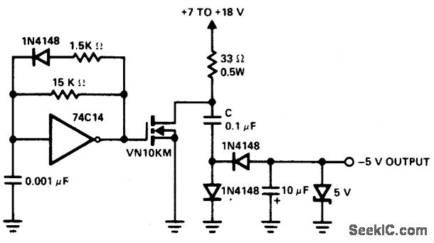 A low-power converter suitable for deriving a higher voltage from a main system rail in an on-board application. With the transformer shown, the operating frequency is 250kHz. Z1 serves as a dissipative voltage regulator for the output and also clips the drain voltage to a level below the rated VMOS breakdon boltage.