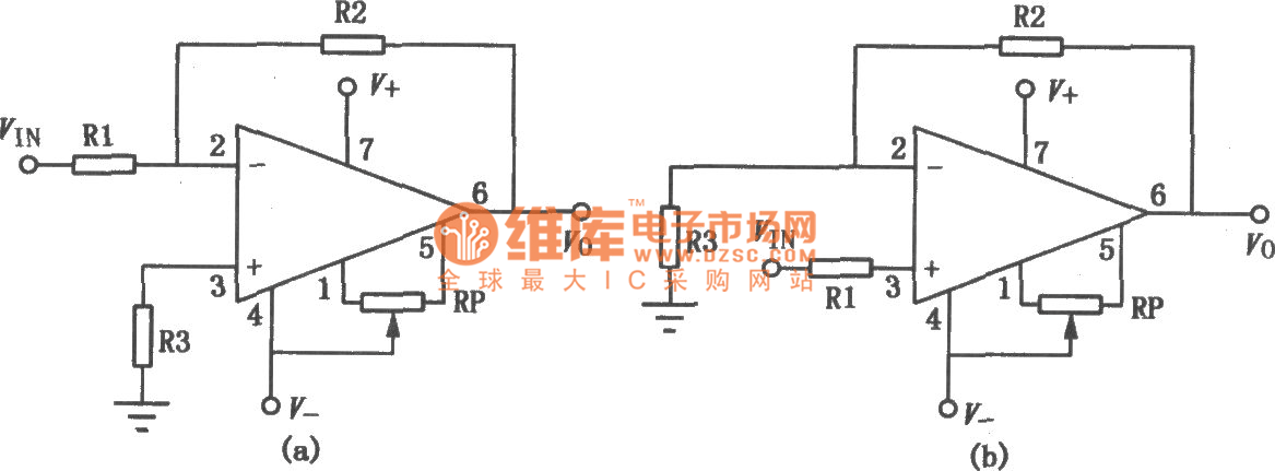 μA741 is a high performance, internal compensation operational amplifier. The features are: Low power consumption, no external frequency compensation. It is with offset voltage short circuit protection and offset voltage zeroing capacity. It will not appear latch phenomenon when it is working. It can be used as integrator, summing amplifier and general feedback amplifier. The similar or direct substitution models are: CF741MT, CF741CT, CF741MD, CF741CD, CF741MJ, CF741CJ, CF741CP, F007, F008 and so on. The μA741 typical application circuit is shown as above. Figure (a) is the inverting input amplifier circuit, Figure (b) is the same phase input amplifier circuit.
