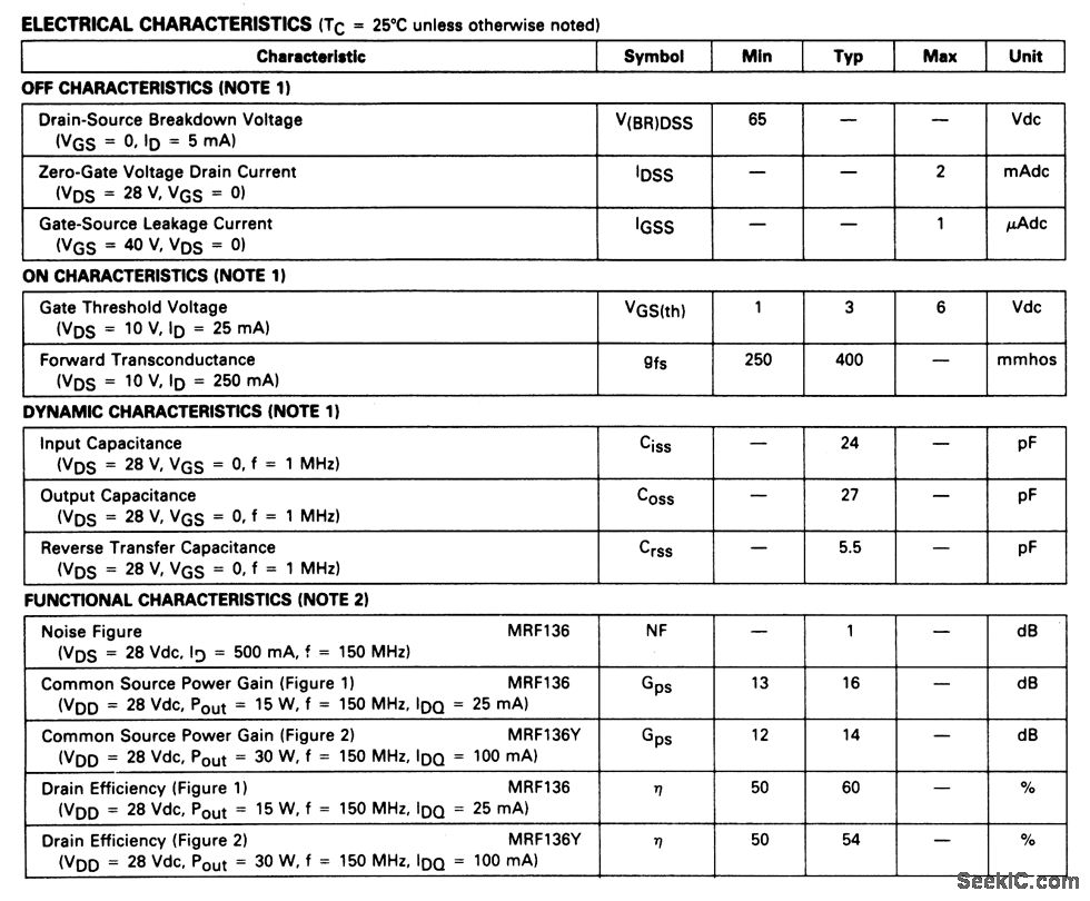 The electrical characteristics for the MRF136 shown in this circuit are given in Fig. 2-48B.