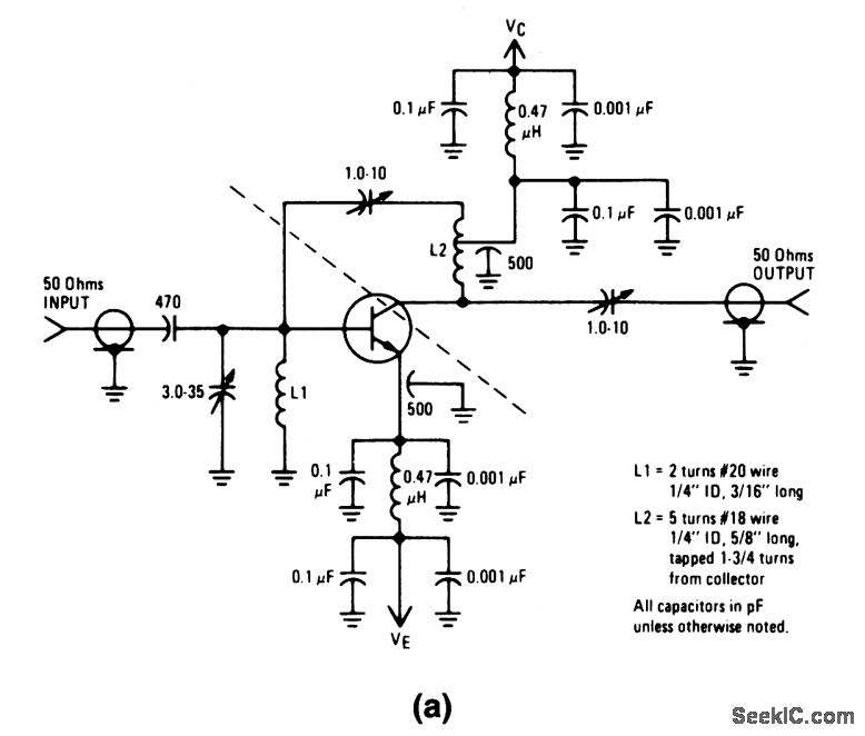 http://www.seekic.com/circuit_diagram/Amplifier_Circuit/200_MHz_narrowband_amplifier_15_V_supply.html