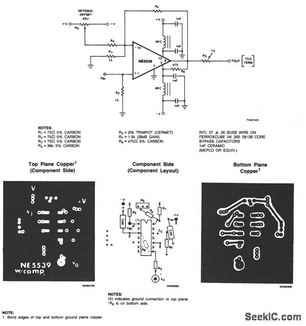 The physical circuit layout is extremely critical. Breadboarding is not recommended. A double-sided copper-clad printed circuit board will result in more favorable system operation.