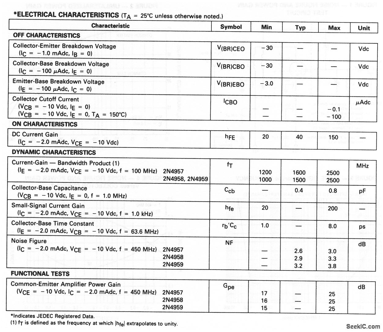 The electrical characteristics for the 2N4957,2N4958,and 2N4959 shown in this circuit are given in Fig.2-18B.