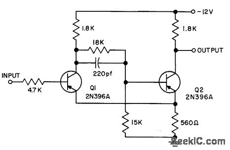 Used for wave form restoration, signal level shifting, squaring, and d-c level detection. Q1 conducts if input is more negative than -5 v. Q2 conducts when input is more positive than -2 v. Operating range is -55 to 71℃.- Transistor Manual, Seventh Edition, General Electric Co., 1964, p 200.