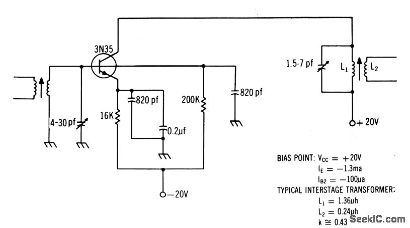 Use of 3N35 gives excellent agc characteristics, Stage gain is 12 db.-Texas Instruments Inc., Solid-State Communications, McGraw-Hill, N,Y., 1966, p 3.