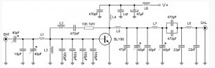 The heart of this stage is an RF transistor (the BLY90) which, together with the classical passive components in such systems, performs the function of amplifying the radio signal present at its base to deliver to its collector.