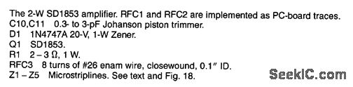 Two W output can be produced by this circuit designed for the 902- to 928-MHz amateur band. As shown in the figures, much of the circuitry is in the form of PC board traces.