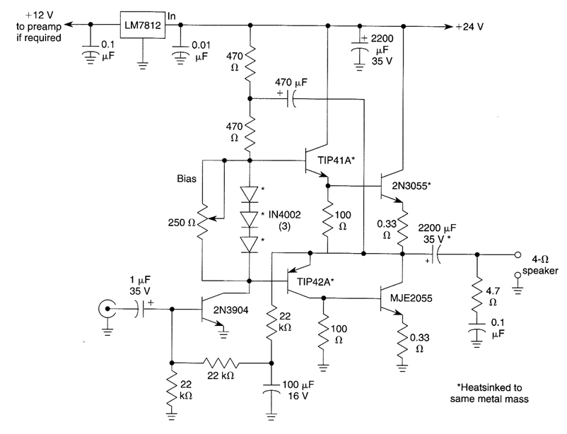 http://www.seekic.com/circuit_diagram/Amplifier_Circuit/Amplifier_Circuits-Audio/10_WATT_AUDIO_AMPLIFIER.html