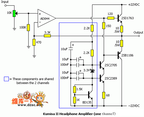 http://www.seekic.com/circuit_diagram/Amplifier_Circuit/Amplifier_Circuits-Audio/Fever_headphone_amplifier_circuit_diagram_1.html