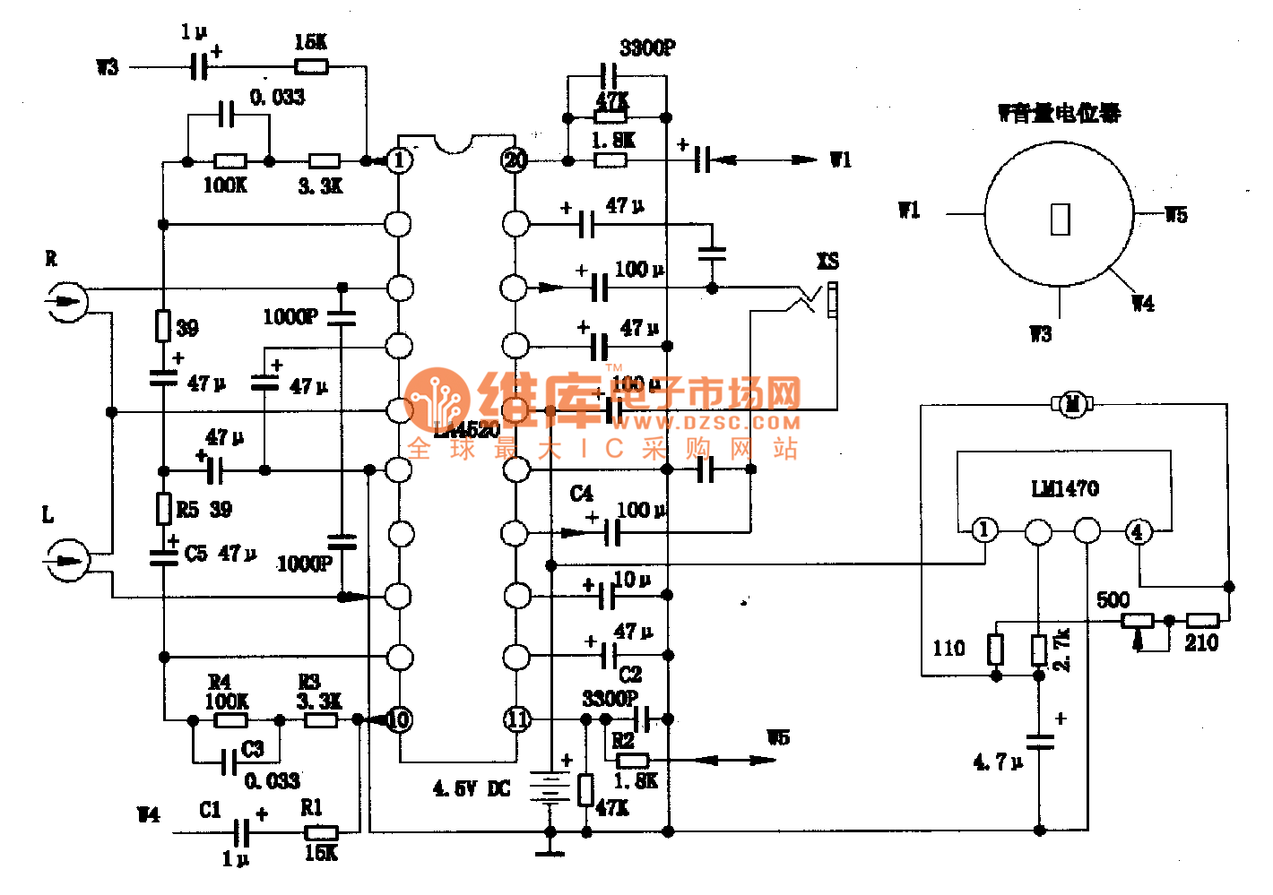 http://www.seekic.com/circuit_diagram/Amplifier_Circuit/Amplifier_Circuits-Audio/LA4520_Single_chip_stereo_player_integrated_circuit_diagram.html