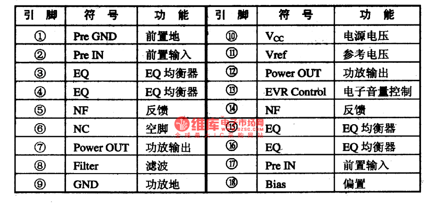 EM78811 is an integrated circuit of stereo reproducing single door, which is widely used in walk-man and portable radios.1.The internal circuit and pin functions of BA3521BA3521 contains 2-channel pre-stage, 2-channel headphone power amplifier, power volume control circuit and mute circuit while power supply is on. The internal circuit of is as shown in Figure 1. It is in 18-lead dual in-line package, whose pin functions are listed in Table 1.