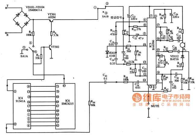Figure 1 The call system typical application circuit which is composed of the BA6566