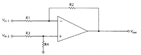 In most cases, R1 is equal to R2 and R3, has the same value as R4 These equalities don't always have to be true, but they do significantly simplify the circuit design in most practical applications. In any case, for a true differential amplifier, the R3,:R1and R2;R4 ratios must be equal. That is:The circuit still functions even if these ratios are not maintained, but the signals at the inverting and noninverting inputs are subjected to differing amounts of gain, which would be undesirable in most practical applications.These resistance ratioi determine the gain of the amplifier:Assuming that the resistance ratios are maintained, the output voltage is equal to the differences between the two input voltages, multiplied by the gain. That is,