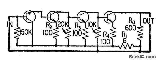 Circuit shows how voltage gain in transistor amplifier can be exchanged for input impedance through use of negative feedback. At same time, voltage gain is made more independent of transistor parameters. -Feedback Increases Input Impedance, Electronics, 32:11, p 150-153.