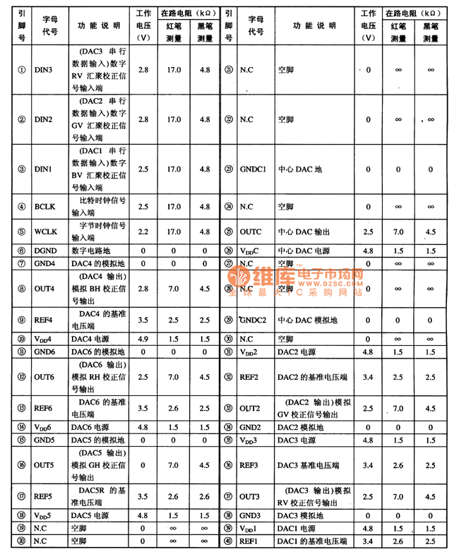 CDO031AM integrated circuit uses 48-pin DIP package structure.The pin function and data are listed in table 1.