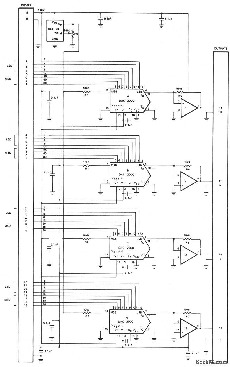http://www.seekic.com/circuit_diagram/Amplifier_Circuit/FOUR_CHANNEL_D_A_OUTPUT_AMPLIFIER.html
