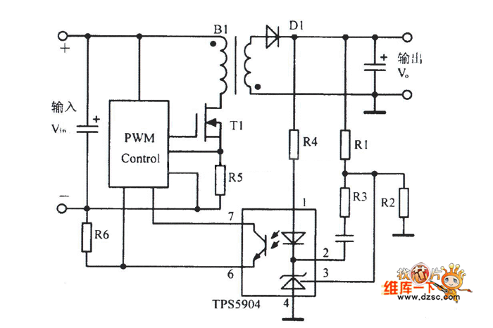 Feedback amplifier TPS5904 circuit is show in the diagram: