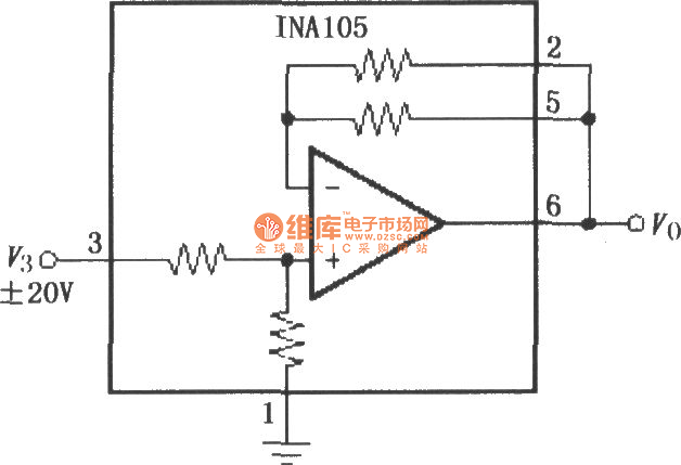 Published:2014/5/22 21:06:00 Author:lynne | Keyword: Gain for 1/2 precision amplifying circuit (INA105), INA105 | From:SeekIC