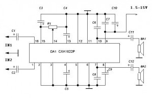 This circuit may be a bit expensive because it uses ic CXA 1622P from SONY. The CXA1622P is a bipolar IC developed as a power amplifier for radio compact cassettes with built-in pre-amplifier and power amplifier electrical volume.