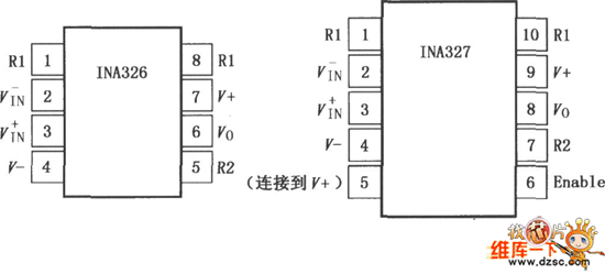 The INA326/327 (with the close function) is the high-performance, low price precision instrumentation amplifier circuit that has the input and output amplitudes of positive and negative power supply voltage (Rail-Rail), it has very low DC error and input common-model range which exceeds the positive and negative Rails, and it can be used in the range of the universal amplification to the high precision amplification. In the using period of products, the super long time stability and the low 1/f noise ensures the low offset voltage and drift. The INA326/327 can be used in the low level sensor amplification, the bridge circuit amplifier, the pressure components, the thermocouple amplification, the wide dynamic range sensor, the high resolution test system, the weight measurement, the multi-channel data acquisition, the medical instrument, the universal amplification.