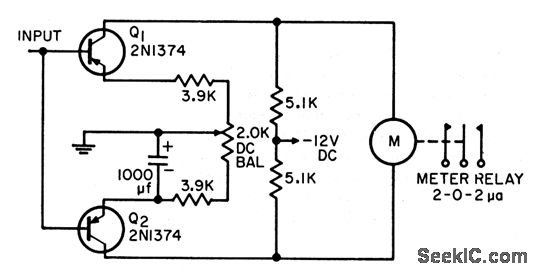 Sensitive and stable d-c amplifier operates relay only on rapid changes of input voltage, yet is immune lo drift. Will also operate on ac signal, which is the some as rapidly changing d-c signal-Rate Circuit, Electronic Circuit Design Handbook, Mactier Pub. Corp. N.Y.1965, p239.