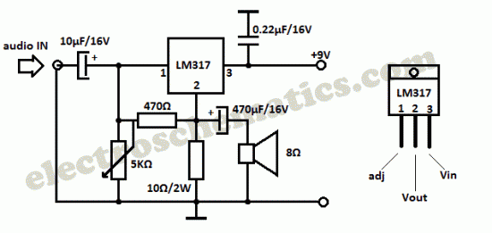 http://www.seekic.com/circuit_diagram/Amplifier_Circuit/LM317_Audio_Amplifier_Circuit.html