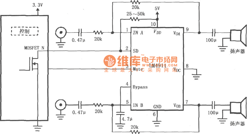 http://www.seekic.com/circuit_diagram/Amplifier_Circuit/LM4911_Different_power_conduction_time_recommended_circuit_diagram.html