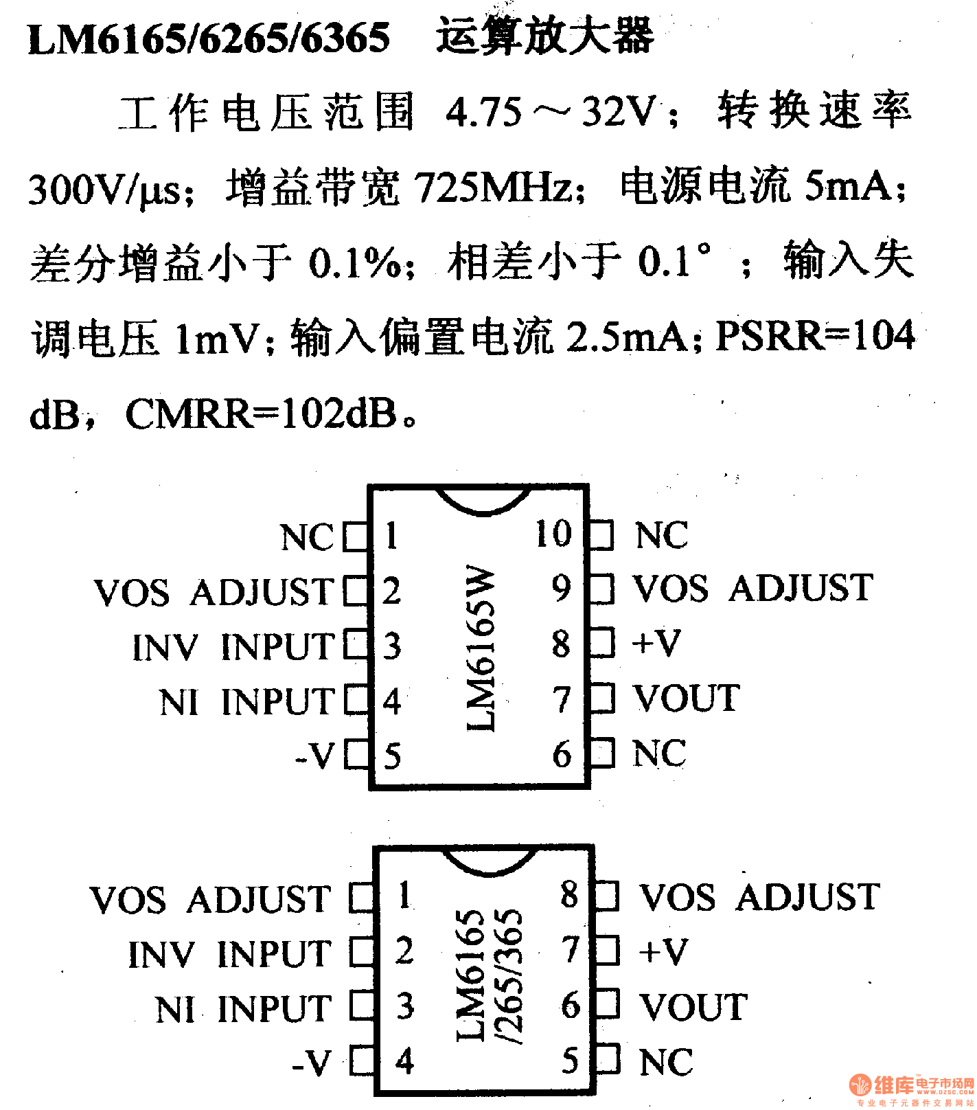 http://www.seekic.com/circuit_diagram/Amplifier_Circuit/LM6165_6265_6365_operational_amplifier_and_its_pin_main_characteristics.html