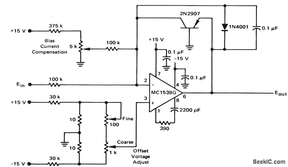 Logarithmic amplifier using an MC1S39G op amp (courtesy Motorola Semiconductor Products Inc.).
