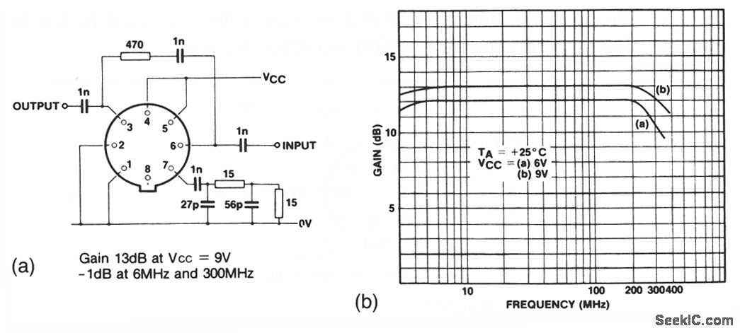 Figure 2-6A shows an SL560 used as a wide-bandwidth amplifier.Figure 2-6B shows the bypical frequency response.